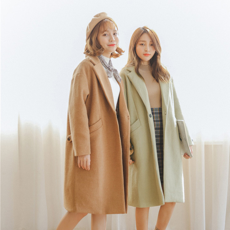 品牌女裝 外套女冬裝新款2015韓版羊毛呢女外套繭型中長款寬松 /