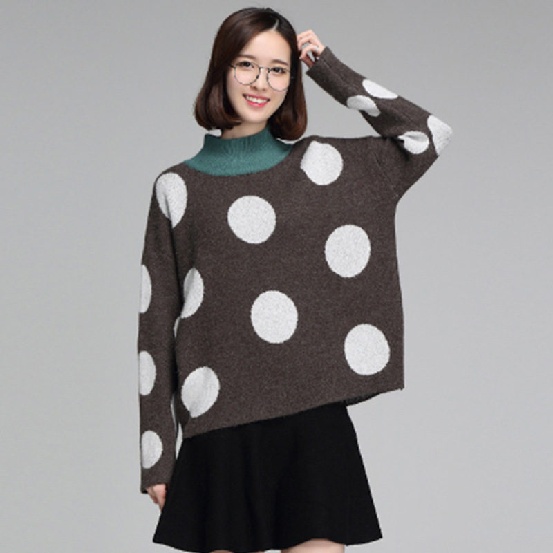 2016春裝新款半高領(lǐng)長袖針織衫打底衫韓版波點(diǎn)寬松加厚套頭毛衣女 /