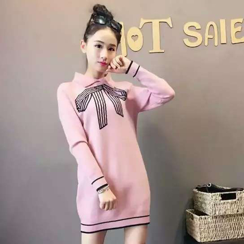 2016春韓版修身顯瘦毛衣貂絨蝴蝶結(jié)打底中長款娃娃領(lǐng)長袖針織衫女 /
