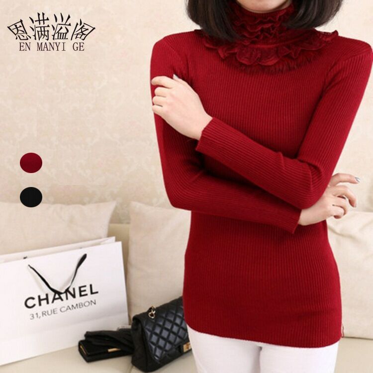 春裝新款女裝甜美修身荷葉邊針織衫熱賣長袖打底細(xì)毛衣女廠家直銷 /