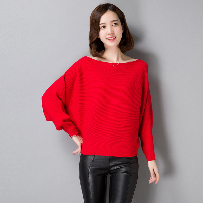 2015秋冬新款純色女式蝙蝠衫 一字領(lǐng)長袖套頭毛衣寬松打底衫女 /