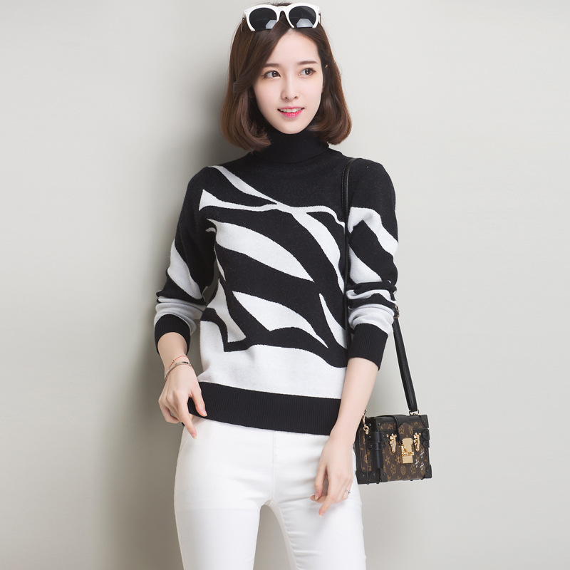 高領(lǐng)毛衣女式2015秋冬新款條紋針織衫韓版東大門套頭打底衫 /