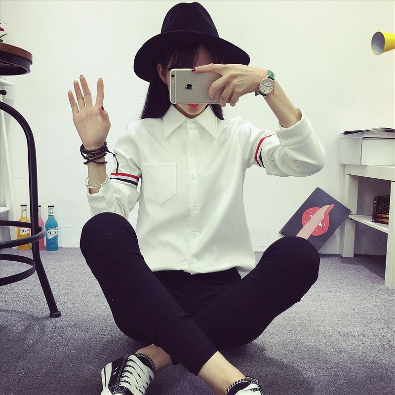 秋冬韓版新款女裝加厚加絨襯衫女 長袖修身襯衣學(xué)院風(fēng)學(xué)生打底衫 /