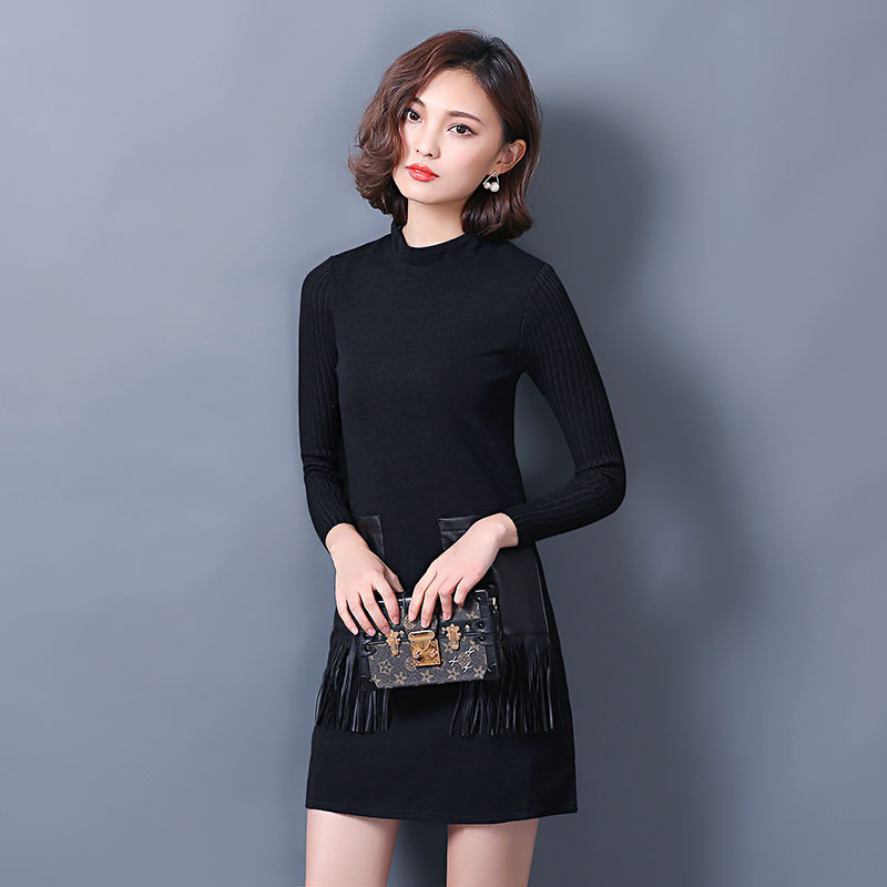 中長款長袖蕾絲衫女式2015冬季新款 加絨加厚打底衫PU皮小衫保暖 /