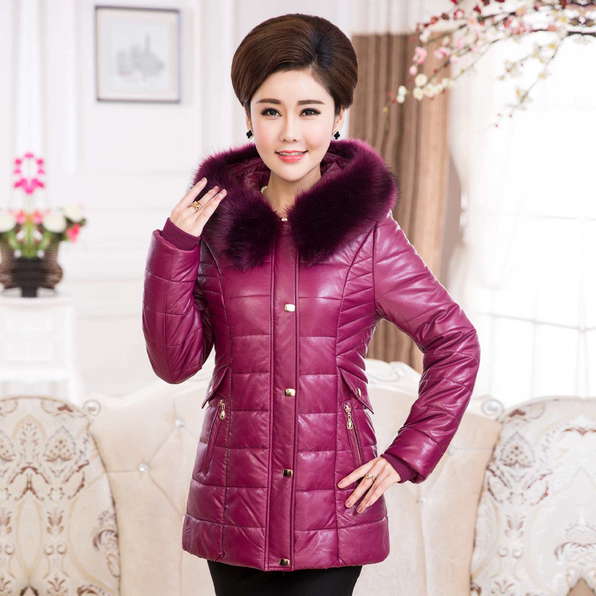 2015中老年女裝冬裝外套 時尚媽媽裝大毛領(lǐng)高檔加棉PU皮衣批發(fā) /