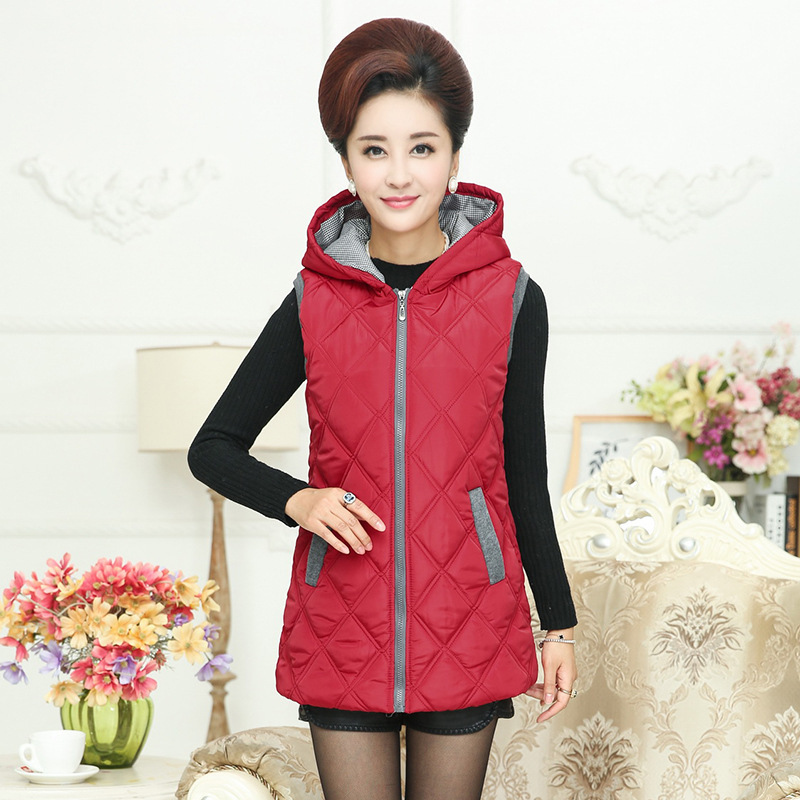 中老年女裝馬甲 媽媽裝秋冬款加絨加棉連帽馬夾大碼奶奶棉馬甲 /