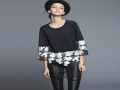 歐洲站2015秋冬新款女裝歐美圓領(lǐng)七分袖繡花網(wǎng)紗透視性感下擺上衣 /