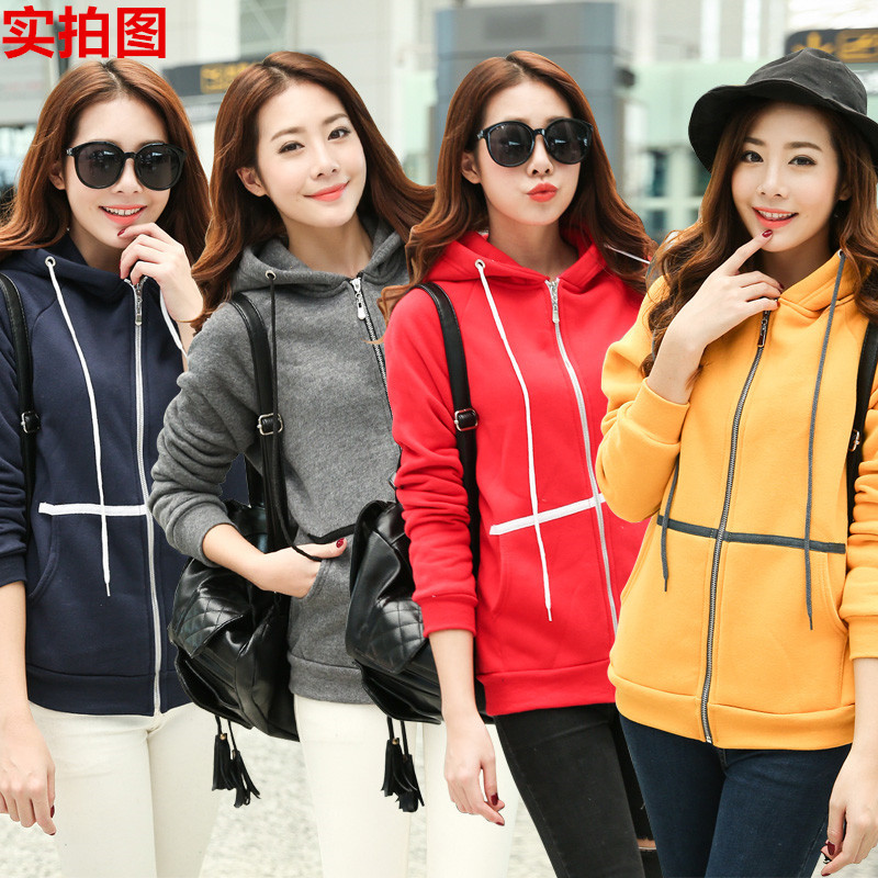 模特實(shí)拍秋冬加絨加厚衛(wèi)衣寬松開衫拉鏈學(xué)生中長(zhǎng)款休閑外套 /