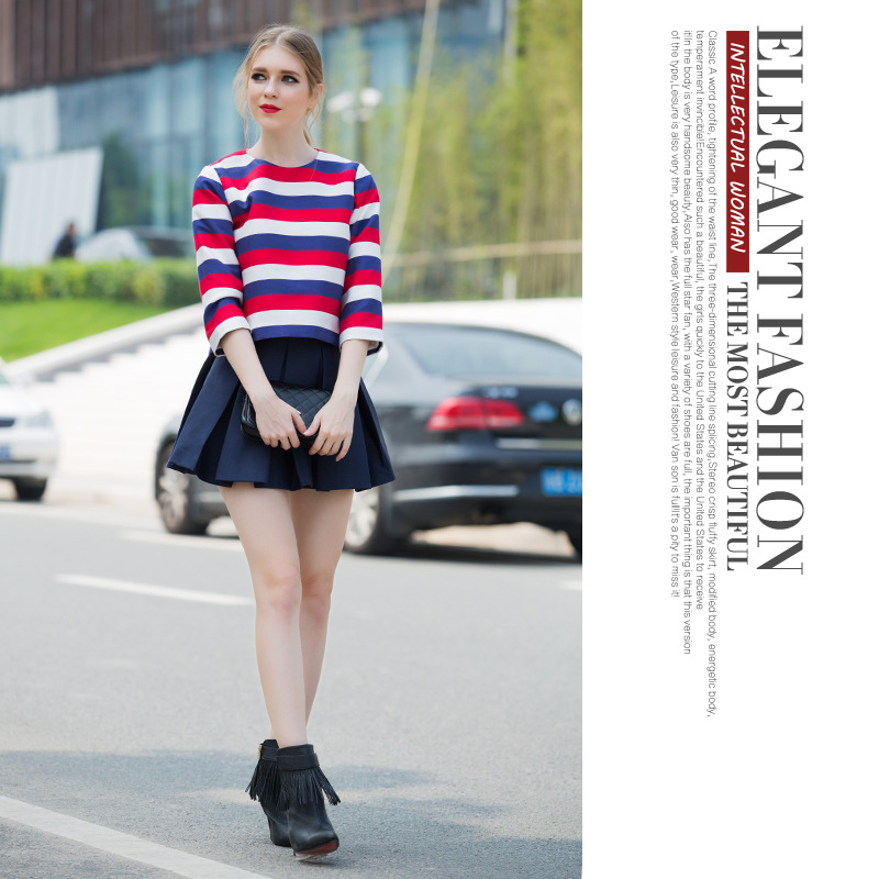 2015秋冬新裝廠家直銷女裝套裝顯瘦紅色圓領(lǐng)上衣+半身裙兩件套 /