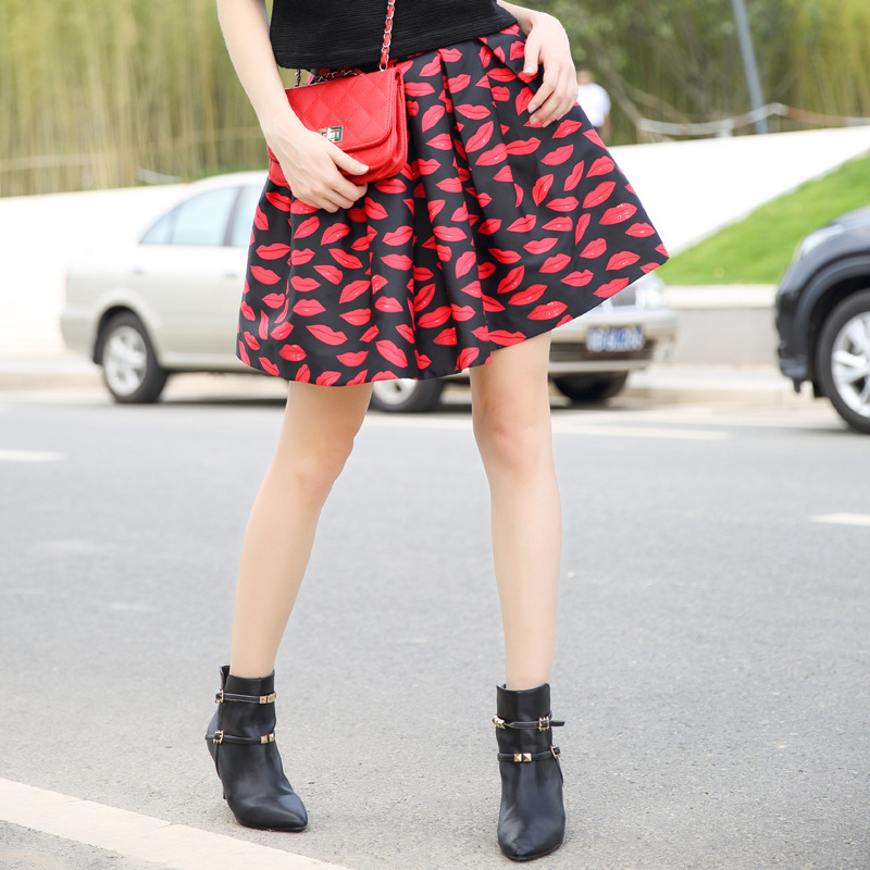 廠家直銷歐洲站秋冬季新款正品紅唇印花蓬蓬裙半裙短裙印花半身裙 /