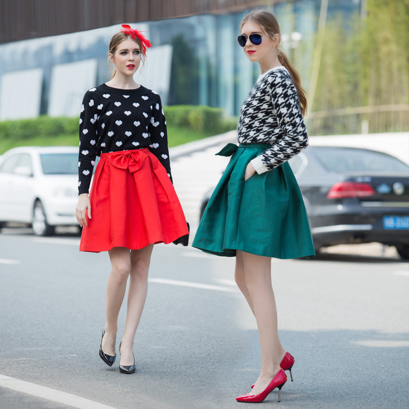 2015早秋新款修身顯瘦A字歐美蝴蝶結(jié)半身裙中裙蓬蓬裙 /