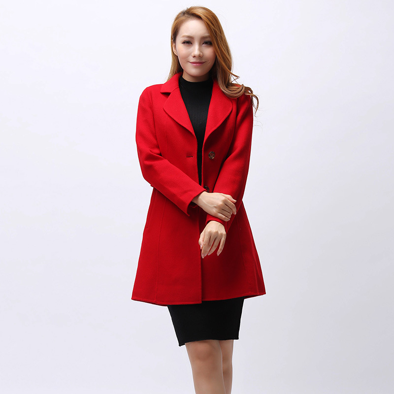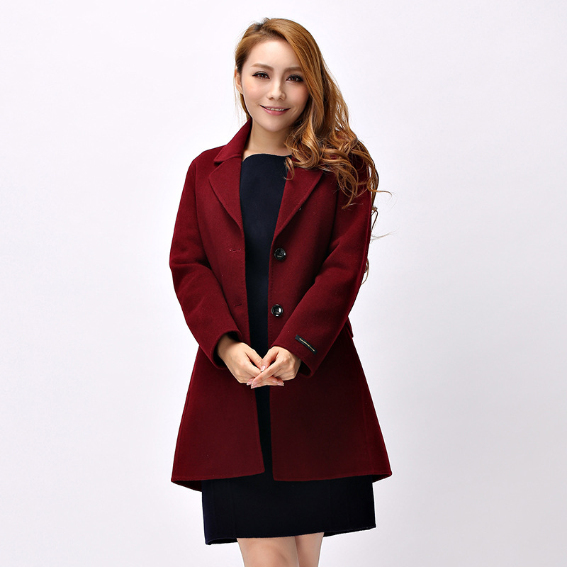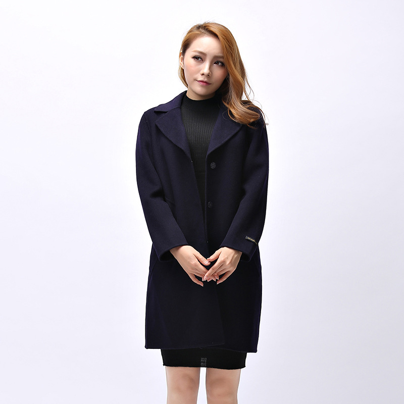 批發(fā)2015秋季新款時尚舒適保暖中長款大衣 翻領(lǐng)雙面羊毛女式外套 /