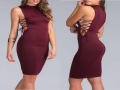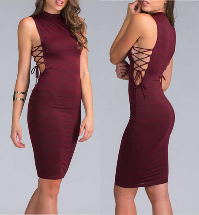 速賣通eaby外貿(mào)爆款女裝性感無袖圓領(lǐng)綁帶鏤空包臀連衣裙 /