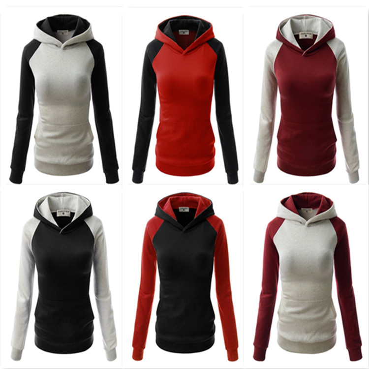 2015 速賣通ebay 爆款歐美撞色拼接口袋連帽衛(wèi)衣 插肩袖T恤 /