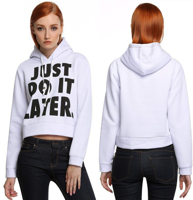 2015歐美女士秋冬新款女裝長袖套頭寬松連帽字母衛(wèi)衣女短款上衣 /