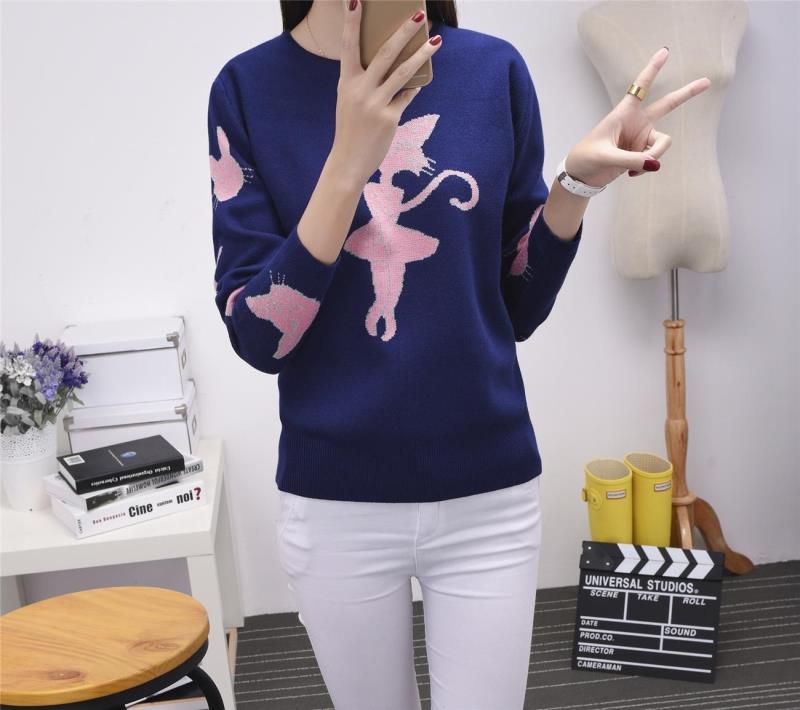 2015秋冬款新品時尚女裝休閑百搭毛衣圓領(lǐng)卡通圖針織衫女 /