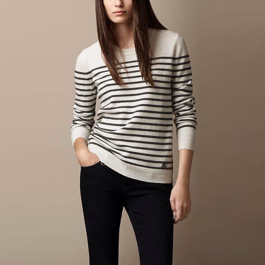 春秋爆款歐洲站羊絨毛衫女款條紋間色條紋經(jīng)典款針織長(zhǎng)袖上衣套頭 /