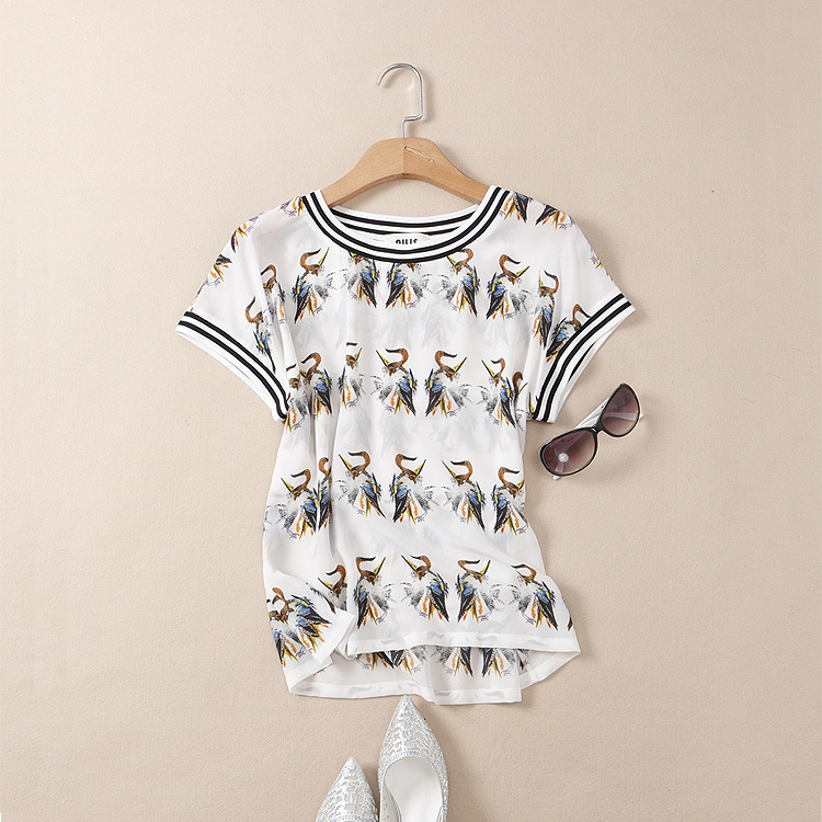 簡(jiǎn)介: 貨源類別現(xiàn)貨 產(chǎn)地深圳 面料名稱真絲 主面料成分桑蠶絲 主面料成分的含量100(%) 主圖來(lái)源實(shí)拍無(wú)模特 圖案印花 風(fēng)格休閑 款式套頭 袖長(zhǎng)短袖 工藝印花/印染 是否庫(kù)存是 庫(kù)存類型整單 品牌AILIS 版型寬松型 衣長(zhǎng)普通款(50cm<衣長(zhǎng)≤65cm) 領(lǐng)型圓領(lǐng) 袖型常規(guī)袖 流行元素拼接,印花 上市年份/季節(jié)2015夏季