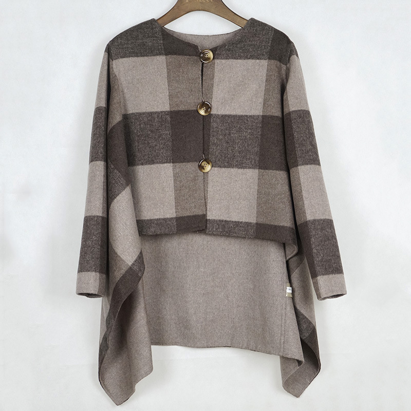 2015秋冬款女裝 時尚休閑方格雙面羊毛呢斗篷外套 女式外套批發(fā) /