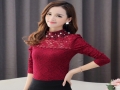 實(shí)拍2015秋冬新款加絨加厚蕾絲打底衫女韓版修身長(zhǎng)袖蕾絲上衣 /