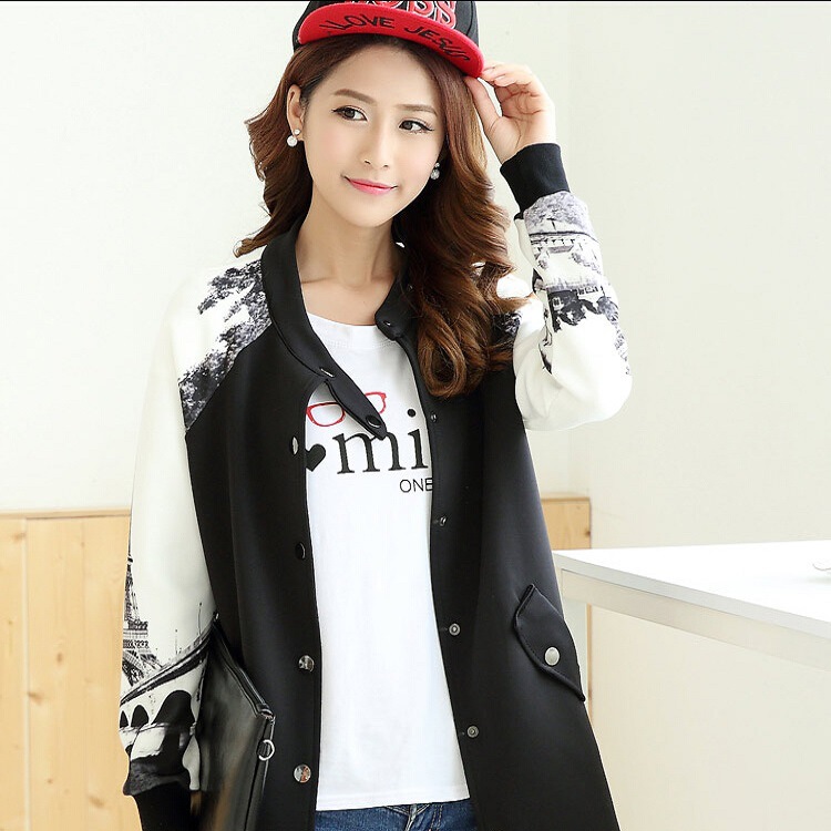 歐洲站2015秋季新款女裝外套學(xué)院風(fēng)長(zhǎng)袖棒球衣英倫大碼太空棉衛(wèi)衣 /