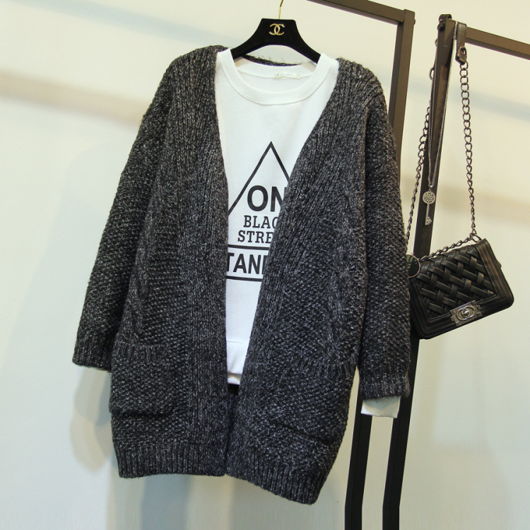 秋冬新款韓國東大門中長款針織開衫女加厚復古寬松口袋毛衣外套 /