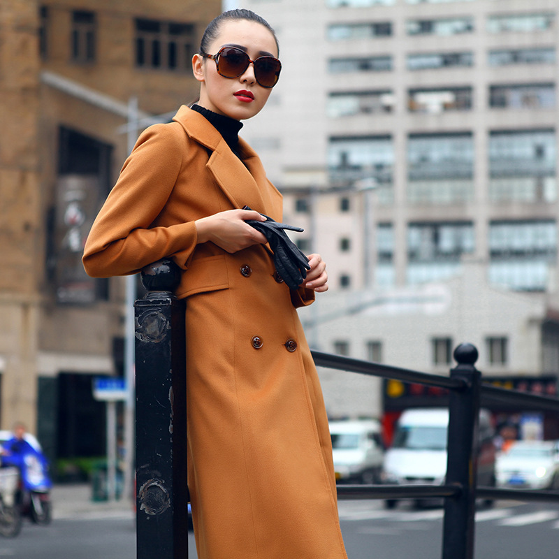 2015秋冬季時(shí)尚新款長(zhǎng)款修身西裝領(lǐng)加厚羊絨大衣毛呢外套 女裝 /