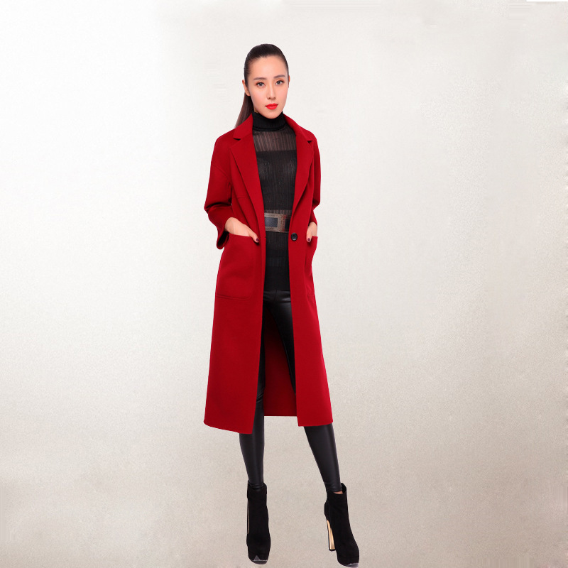 振東運(yùn)紅2015秋冬歐美新品雙面呢大衣長(zhǎng)款羊絨女毛呢外套氣質(zhì)百搭 /
