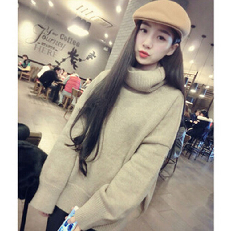 2015秋冬新款韓版高領寬松毛衣套頭女純色中長款顯瘦針織衫 /