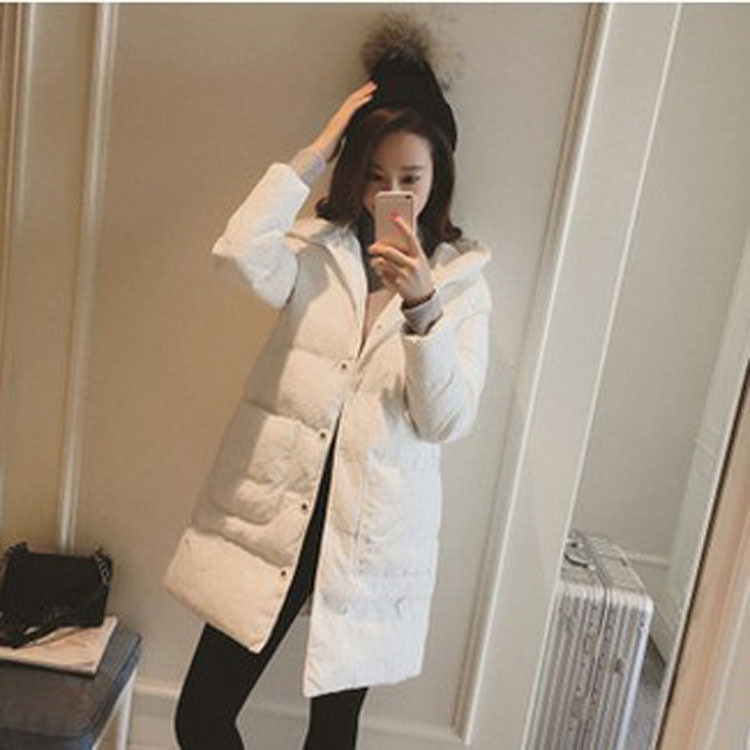 2015冬裝新款韓國甜美純色蕾絲鉤花中長款連帽棉衣棉服女 /