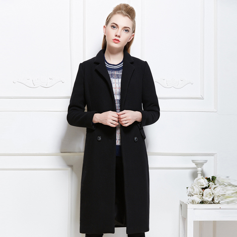 漓漓衣尚2015秋冬新翻領(lǐng)加長款修身細(xì)毛呢大衣 毛呢風(fēng)衣外套女 /