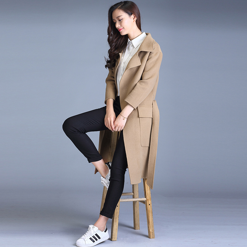 雙面呢大衣新款 高端秋冬手工女裝外套 雙面羊絨大衣中長款 /