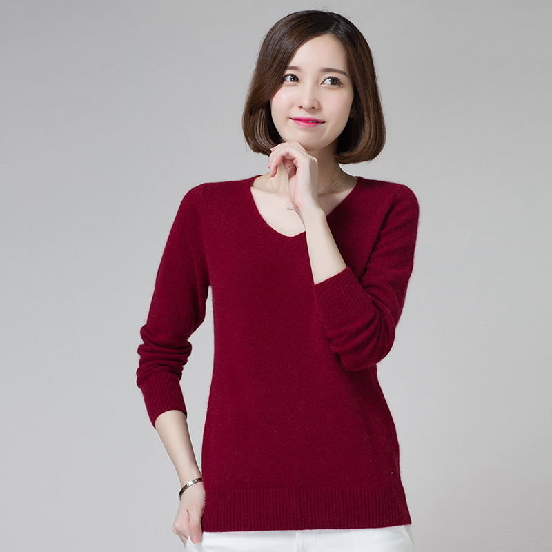 秋冬裝V領(lǐng)貂絨毛衣女短款修身套頭羊絨針織貂絨打底衫女款 /