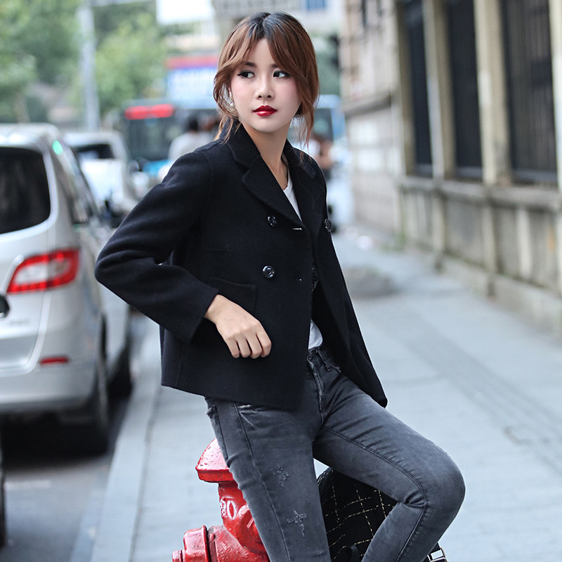 2015秋冬季純手工高端100%純羊毛雙面呢大衣女士短款毛呢外套 /
