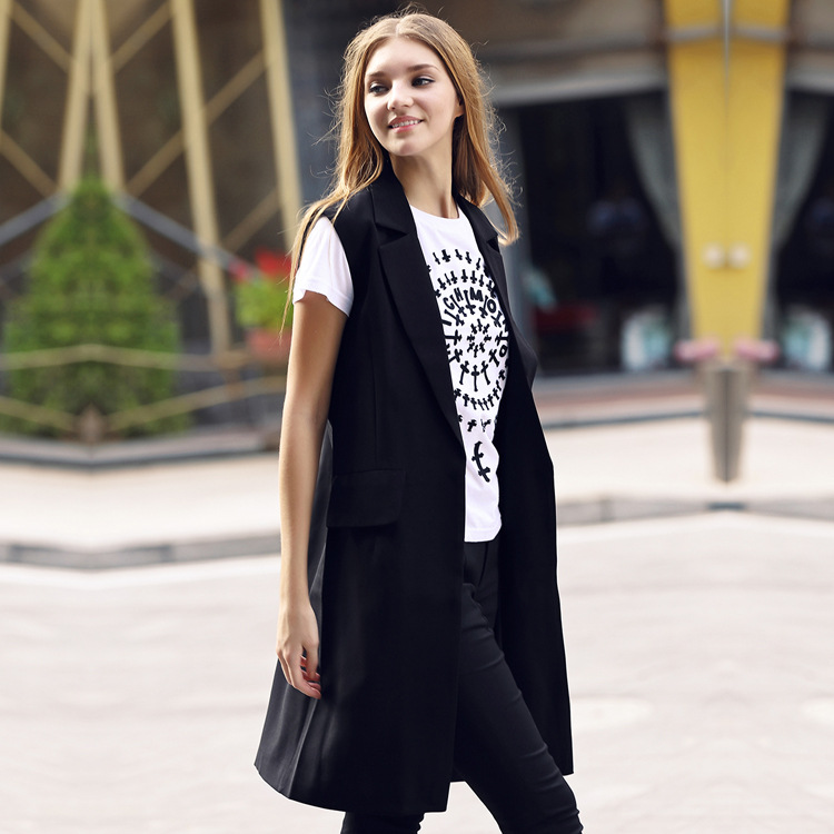 廠家直銷女裝 偶買大牌秋冬無(wú)袖馬甲背心西裝外套中長(zhǎng)款馬甲 /