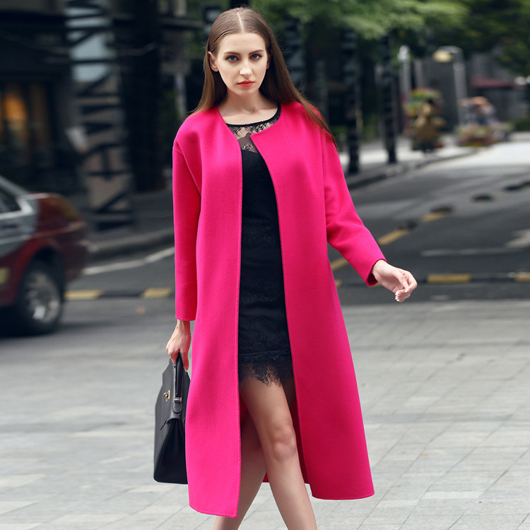 2015秋冬新品歐美羊毛羊絨呢大衣長(zhǎng)袖寬松大衣加長(zhǎng)款女裝外套 /