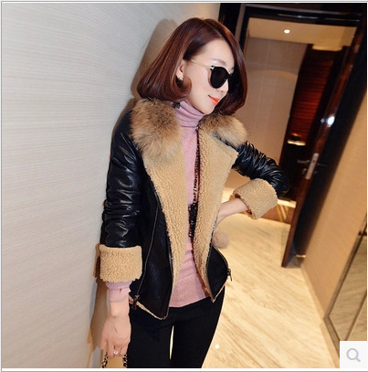2015自留推薦秋冬季韓版女裝 機(jī)車皮毛一體修身款加棉皮衣外套 /