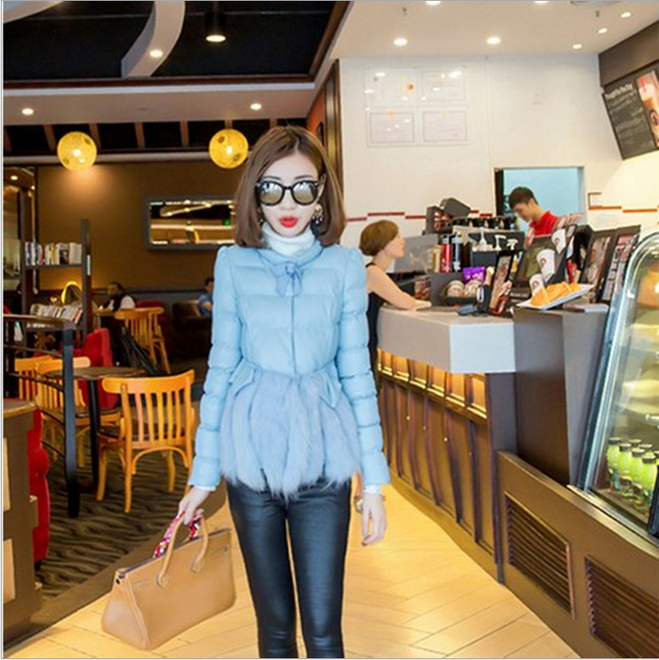 2015羽絨服 潮皮草女士短款外套狐貍毛修身女裝PU皮衣韓版現(xiàn)貨 /