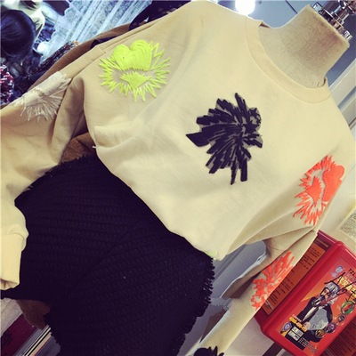 2015冬季新款十三行檔口實拍韓版長袖套頭刺繡花朵衛(wèi)衣批發(fā)女 /