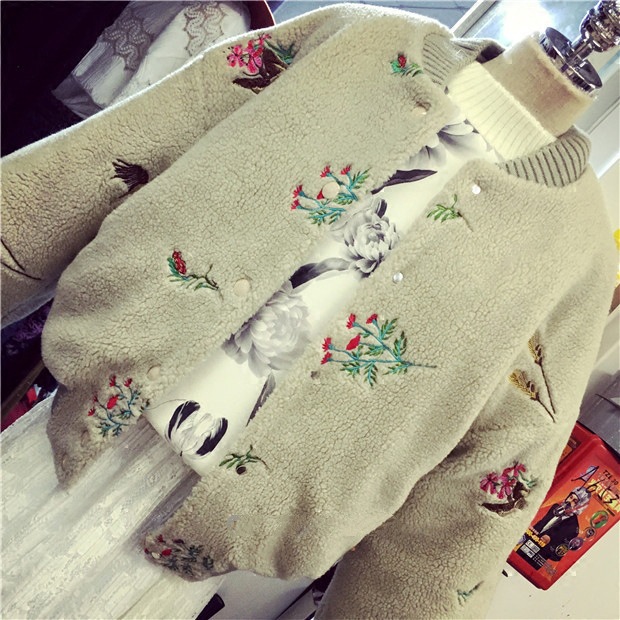 2015冬季新款十三行檔口實拍毛毛刺繡拉鏈外套批發(fā)女 /