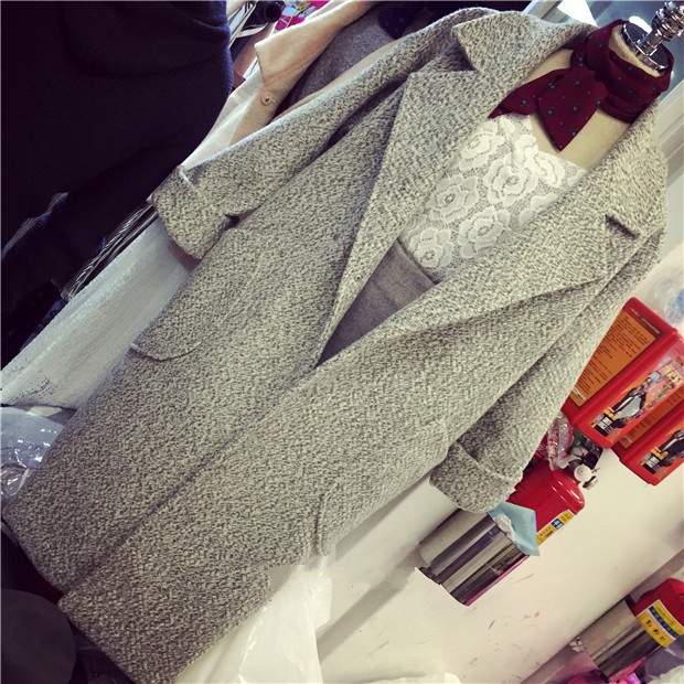 2015冬季新款檔口實拍女裝簡約中長款寬松顯瘦毛呢外套風(fēng)衣大衣女 /