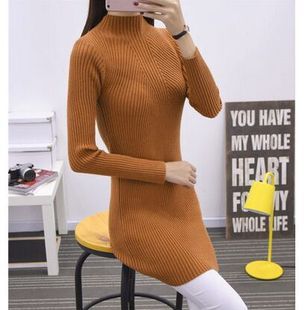 秋冬新款打底螺紋針織毛衫加厚韓版套頭毛衫中長款純色毛衣女 /