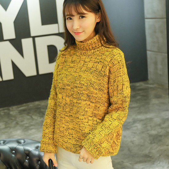 2015秋冬新款韓版女裝中長款泡泡袖打底衫半高領(lǐng)女式針織衫毛衣 /