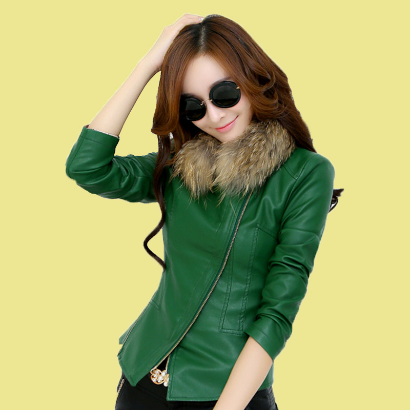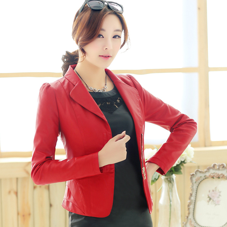 春季女式時(shí)尚多拉鏈閉襟女式短款皮衣 氣質(zhì)休閑真皮女式皮衣批發(fā) /