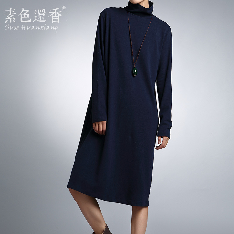 2015春秋新款純棉文藝套頭衫全棉高領(lǐng)修身打底衫長袖長款顯瘦T恤 /