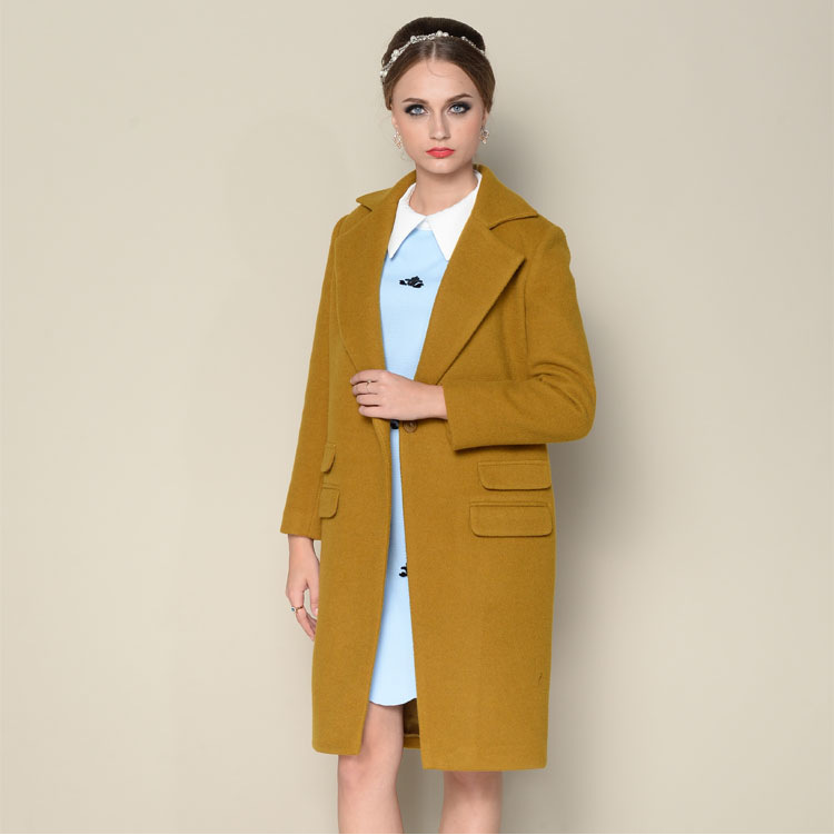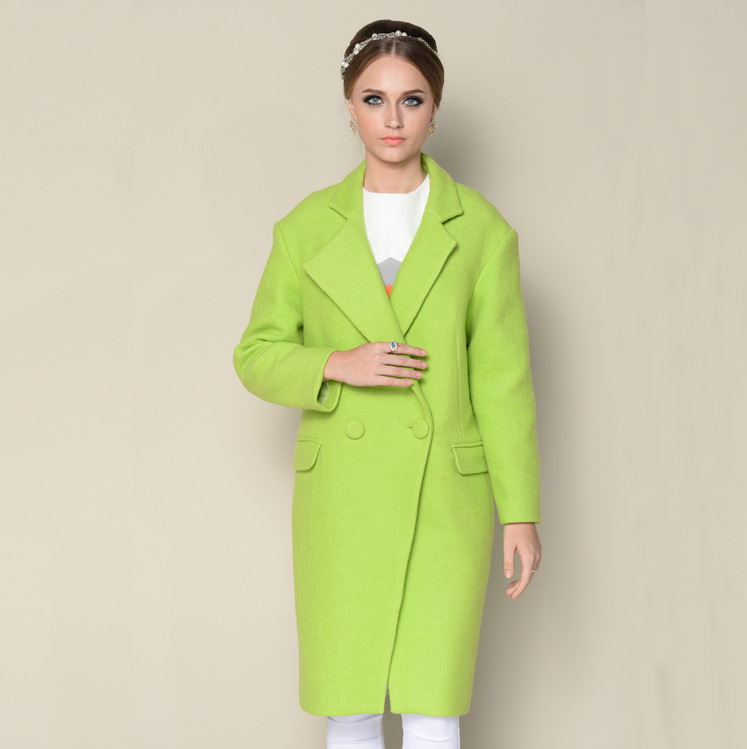 2015冬季新品女裝歐美大牌時尚羊毛呢子中長款加厚大衣外套 /