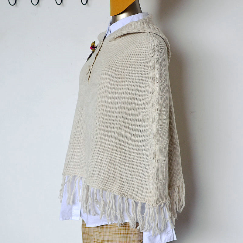 秋冬女裝尾貨批發(fā) 外貿(mào)出口日韓森系連帽粗針厚款斗篷外套 多色選 /