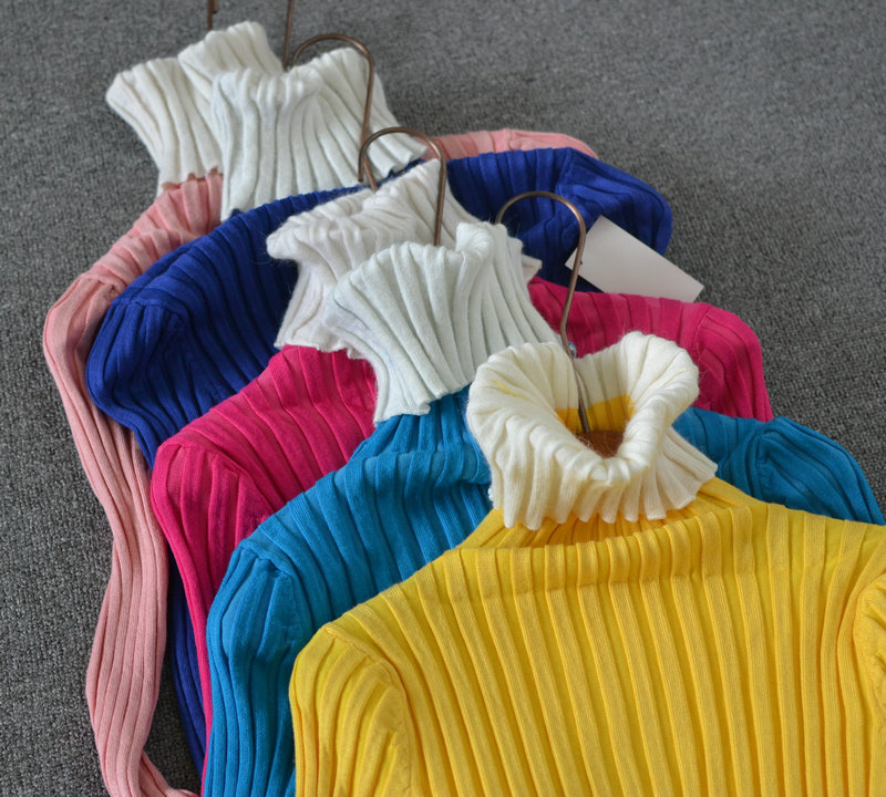 春秋女裝尾貨批發(fā) 韓版甜美彩色高領(lǐng)修身絲光棉針織打底衫庫存清 /