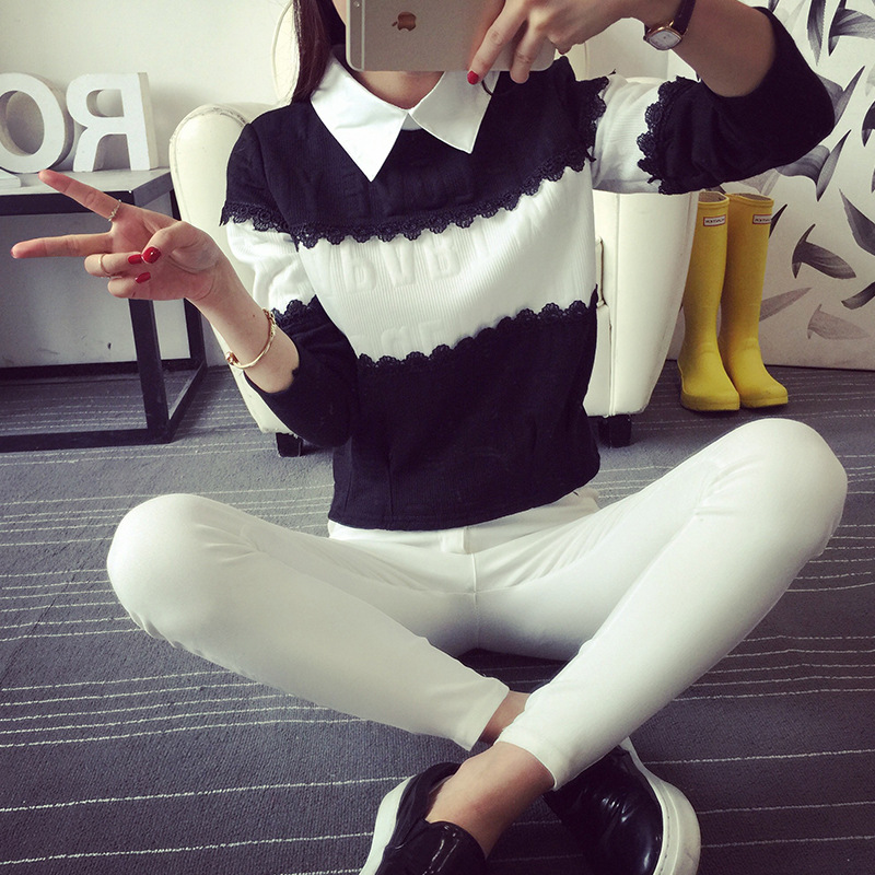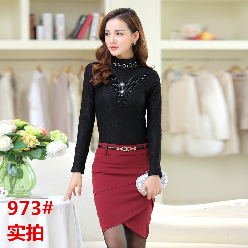 2015秋冬新款加絨加厚蕾絲長袖打底衫高領釘珠女蕾絲衫百搭上衣潮 /