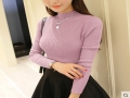 2015秋冬新款韓版半高領(lǐng)套頭長袖毛針織衫女 修身純色中領(lǐng)打底衫 /